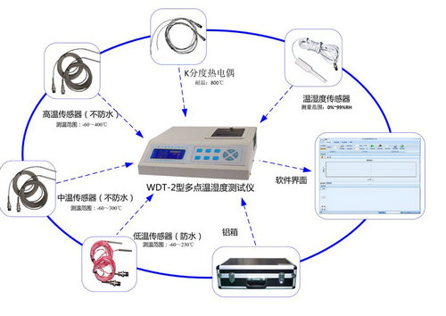 多点温湿度测试仪产品特点 温(湿)环境试验设备专用校准设备依据JJF1101-2003、GB/T5170.2-1996、GB9452-88、JB/T5502-91等涉及温湿度的校准规范高精度的温湿度测量,兼有露点计算功能。 支持并自动识别多种温度、湿度传感器,如RTD、PT100、PT1000、8种热电偶 可永久存储300000个测试数据 嵌入式打印机实时打印测试结果 PC接口:RS232和USB。 软件功能完善,实时显示数据曲线,自动计算温湿度的偏差、波动度、均匀度和F0值,自动生成最新格式的原始记录、校准证书和F0报告。 温湿度一体传感器可以在本机和后台软件上进行单独或整体标定操作,并支持6点温度、湿度标定,所有测量单元可以100%的互换。 |